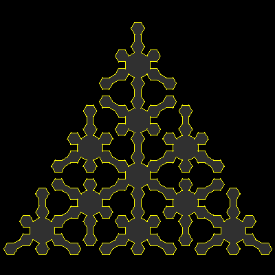 This curve fills a 30 60 right angled triangle. It is repeated twice to form an equalateral triangle, which can then be filled.