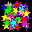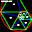 Evolving red and green star shape, moving and rotating.